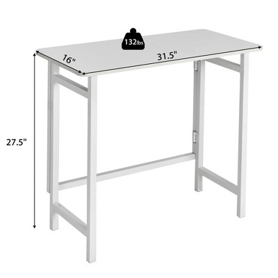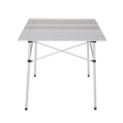 Heavy duty table folds in the center. Here is the target folding table deal: With this target deal you will be able to score one of these tables for only $18 thanks to a sale, a cartwheel offer and a printable coupon. This table is easier to set up and take down than any other we tried, and it's less wobbly. 37.76l x 29.49w x 3.50h.